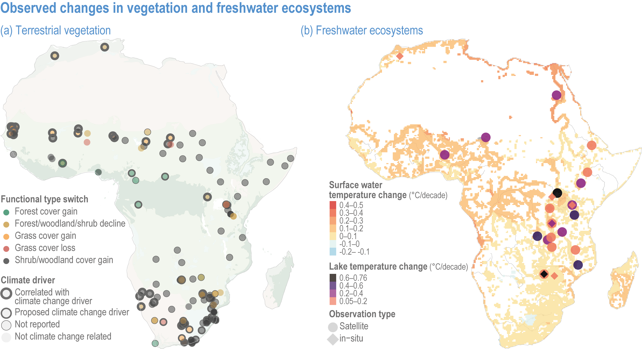 Increasing mean and extreme temperature trends across Africa are attributable to human-caused climate change (high confidence). {9.5.1, 9.5.2}