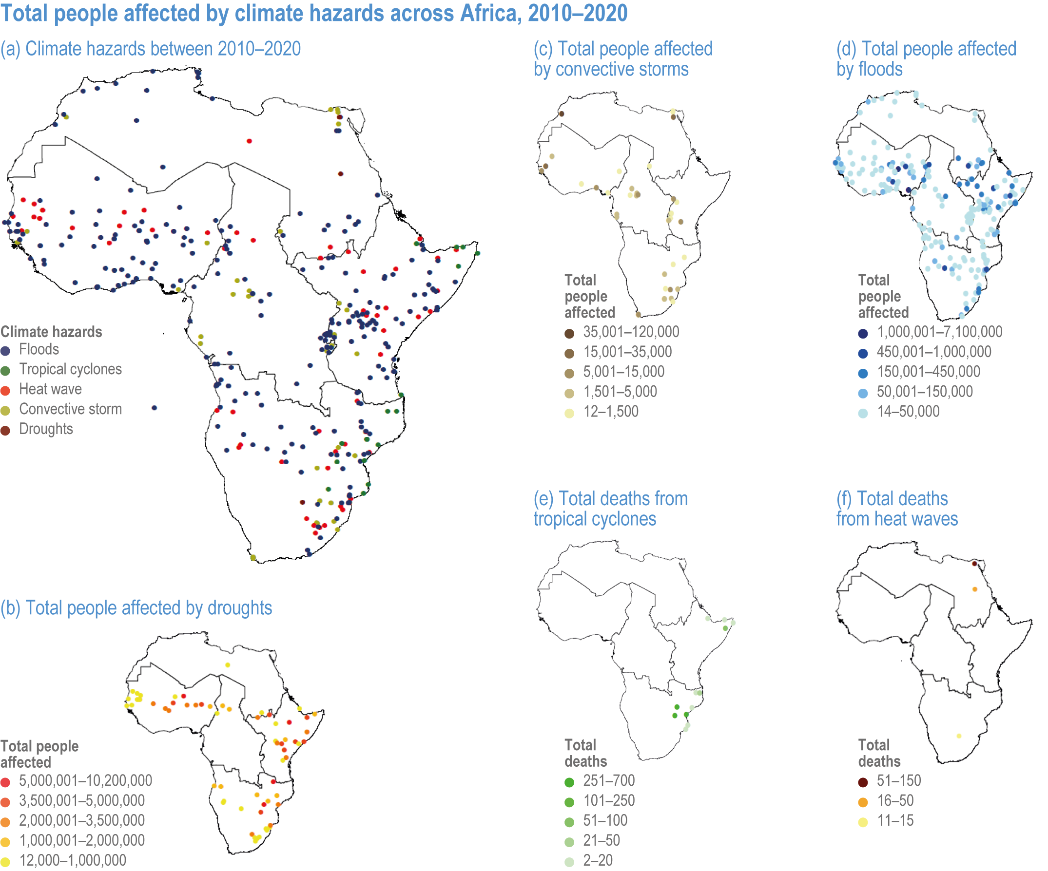 Exposure of people, assets and infrastructure to climate hazards is increasing in Africa compounded by rapid urbanisation, infrastructure deficit, and growing population in informal settlements (high confidence).